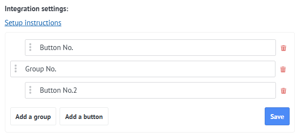 When there are too many buttons, it’s convenient to divide them into groups. To create a group, click the «Add group» button.