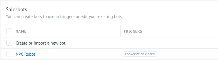 - In the Salesbot list, click the “Create” button.